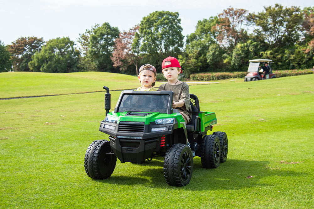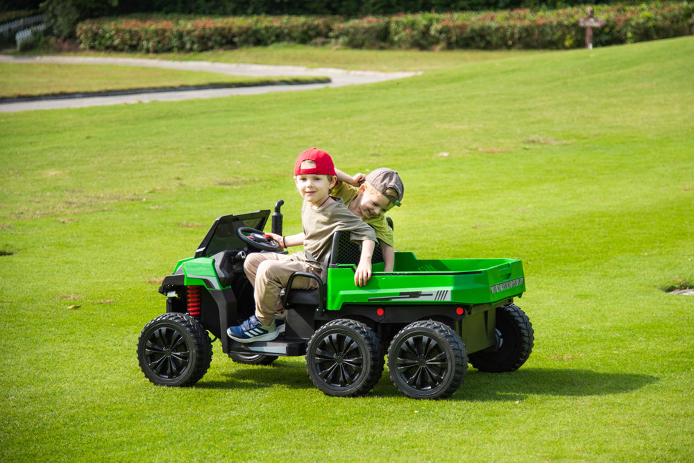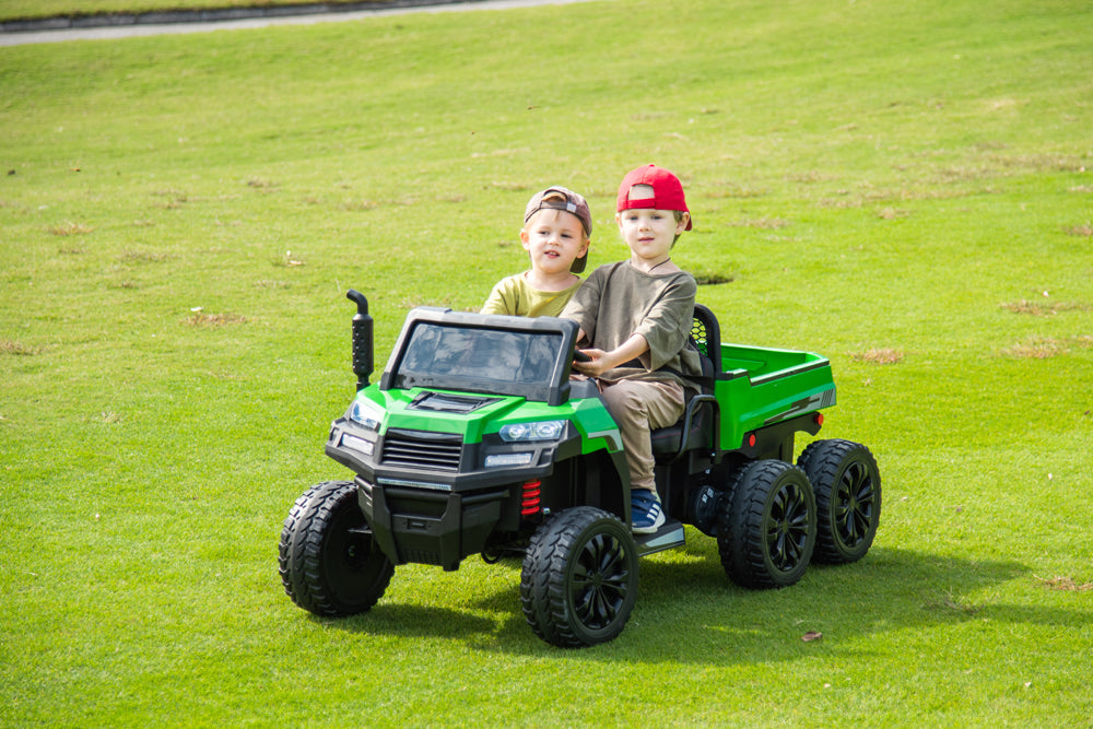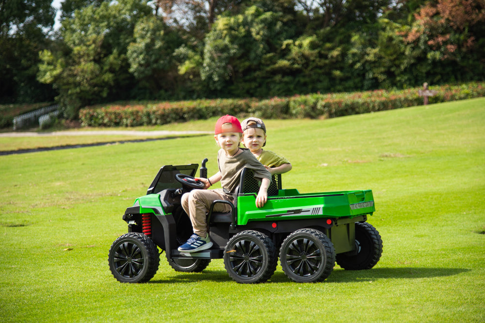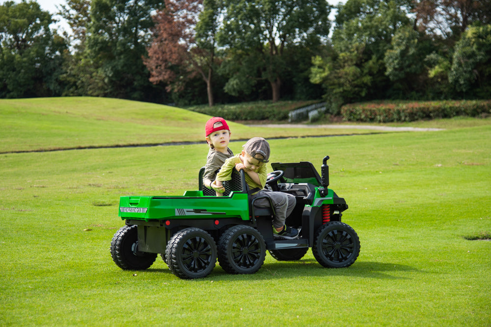 This tractor is so much fun! My kids love driving it around with the trailer pretending they’re out on a farm. It rides super smoothly over bumpy ground, and they’re obsessed with the lights and music. The leather seats and seat belts are a nice touch, and it feels solid and safe. Definitely a favorite toy for outdoor adventures!