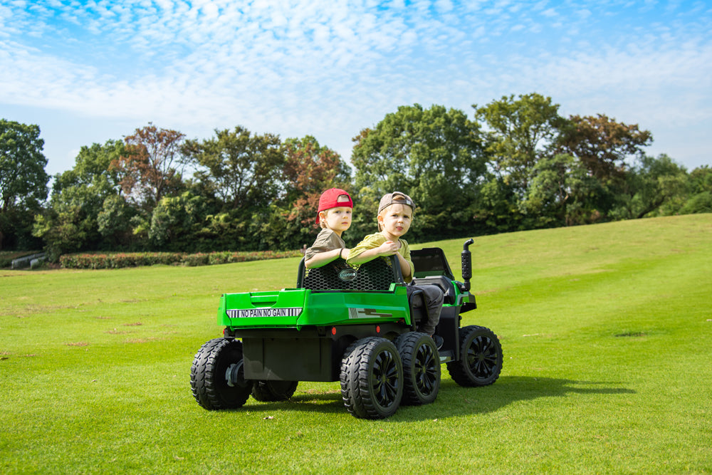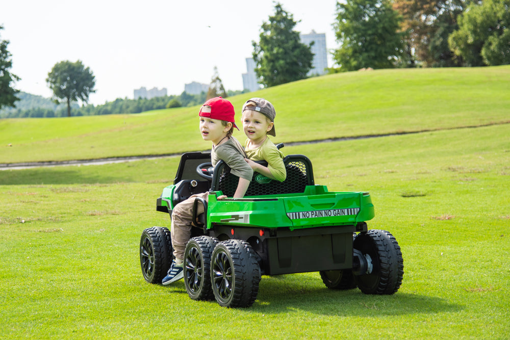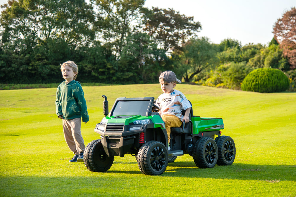 The realistic design of this is such a winner with the kids. It's a smooth ride and the 24V battery gives it really good power. The two-seater is perfect for siblings (and their friends!), and the safety features give us peace of mind. Assembly was straight forward and even when we got stuck we contacted King Toys and they were able to walk us through it over a video call! Never had that type of customer service anywhere else, I can't recommend them enough!